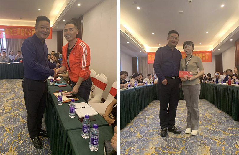 會議第一階段,匯總上季度業績并對各分公司PK結果進行公布,董事長祝旭慷對獲勝分公司進行頒獎。